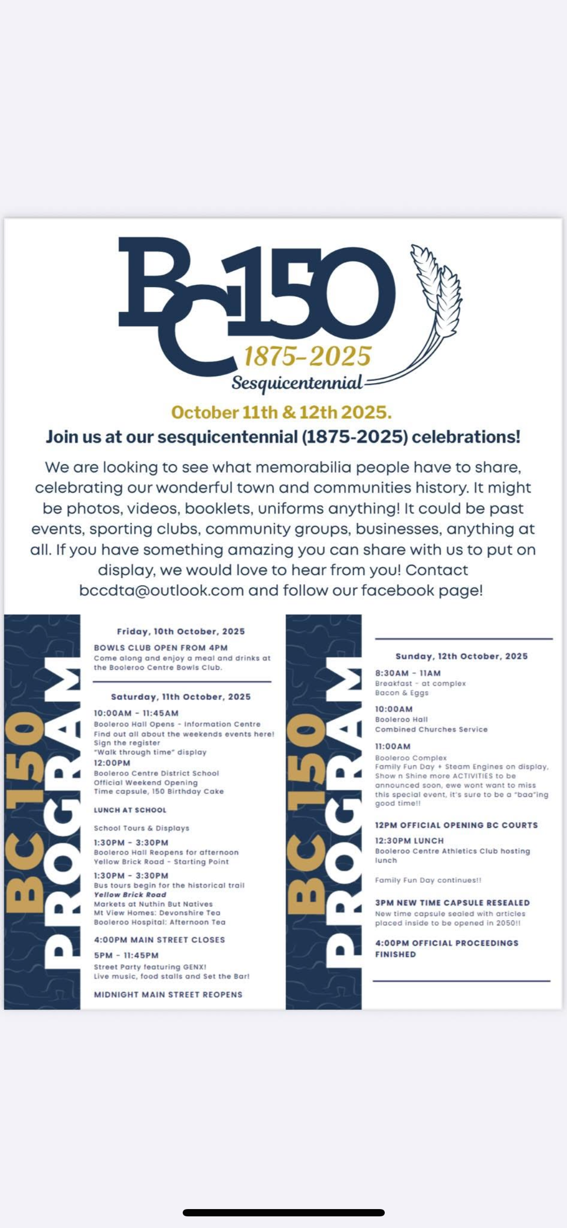 Booleroo Centre 150th Sesquicentennial Celebrations 1875 – 2025
