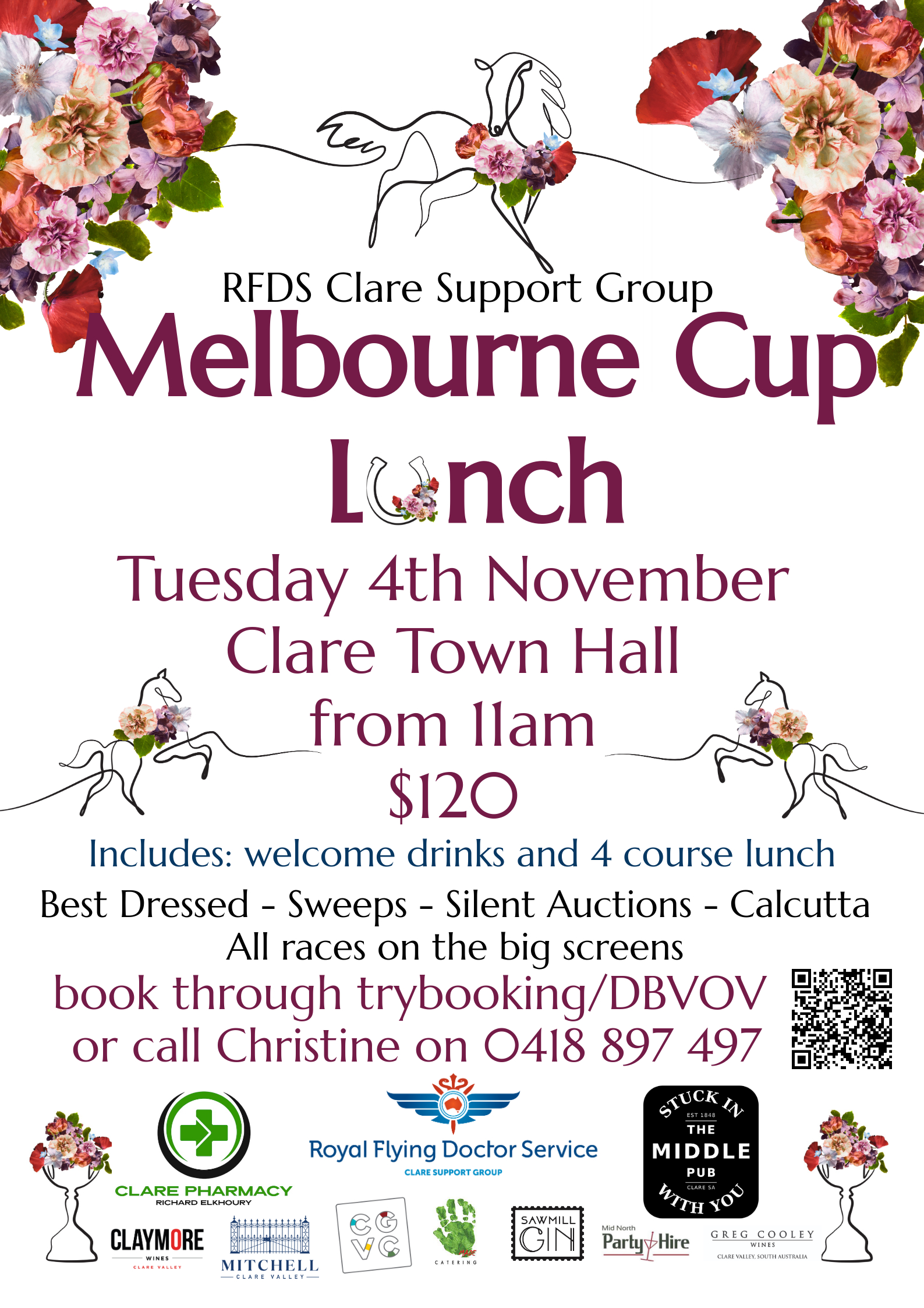 All races on the big screen. Book through trybooking/DBVOV or call Christine on 0418897 497
